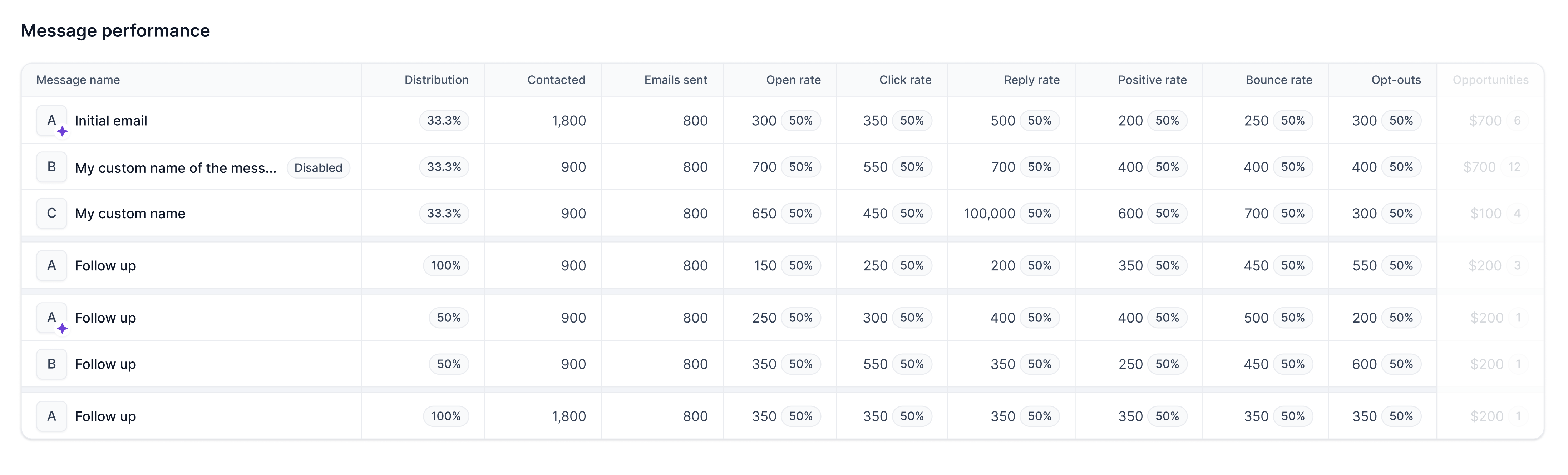 Different openings, value props, and CTAs perform differently across email and LinkedIn. That only gets useful when the results are easy to compare.